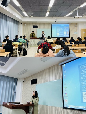 首先,国际班17级员工代表张善博、刘禹汐、费晟奕和石开宇分别就自己的科研和实践经历、雅思学习和备考方法等分别展开分享,并对前期收集的问题进行一一回答,如:学分积和绩点问题、外教课程互动、研究生阶段从事领域等。高年级学长学姐同时给学弟学妹们指出当前所面临的选择和压力,同时也给予了他们引导和鼓励。鼓励大家根据自己的兴趣去选择未来的道路,并为此不断提升个人能力并去努力拼搏。会议也连线了身在异国求学的学长学姐们,给予学弟学妹们在老员工活的建议和祝福。最后,教学办程淑芳老师和辅导员贾莉老师分别对会议进行了总结,并并对培养方案和课程情况进行说明。