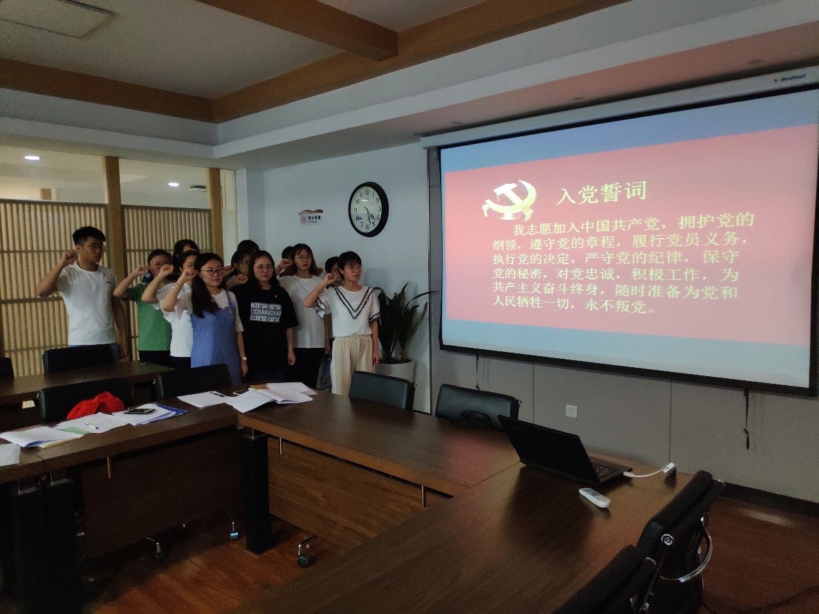 在全体支部党员的见证下,付雪同志带领新接收预备党员面对党徽进行庄严宣誓,用自己的铮铮誓言宣示着对党的忠诚与热爱,澎湃着在学习生活中积极向前发展、发挥先锋模范作用而努力奋斗的激情!