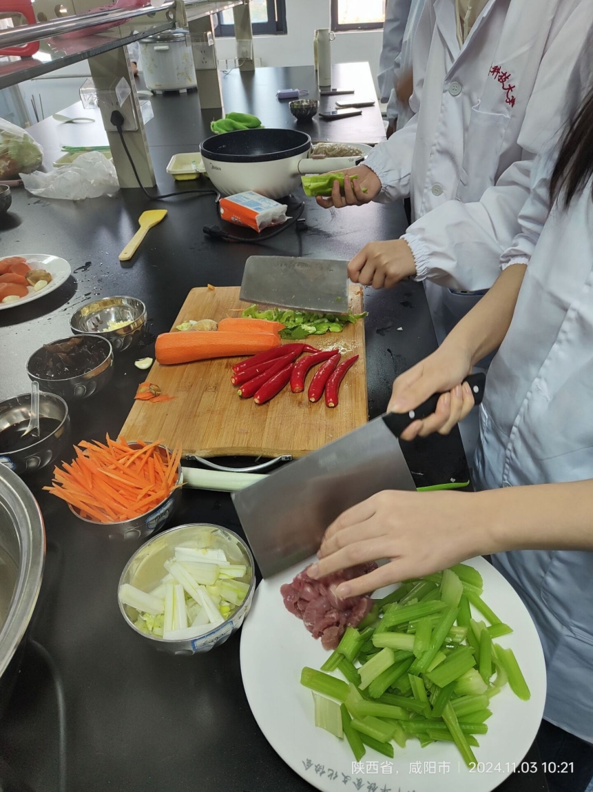 活动开始,在彭强老师的耐心讲解和示范下,同学们逐渐掌握了洗菜、切菜、起锅、烧油等基本烹饪技巧。每一步看似简单,实则蕴含着丰富的烹饪知识和技巧,同学们在实践中不断探索和学习,逐渐从最初的紧张和害怕转变为后来的自信和从容。