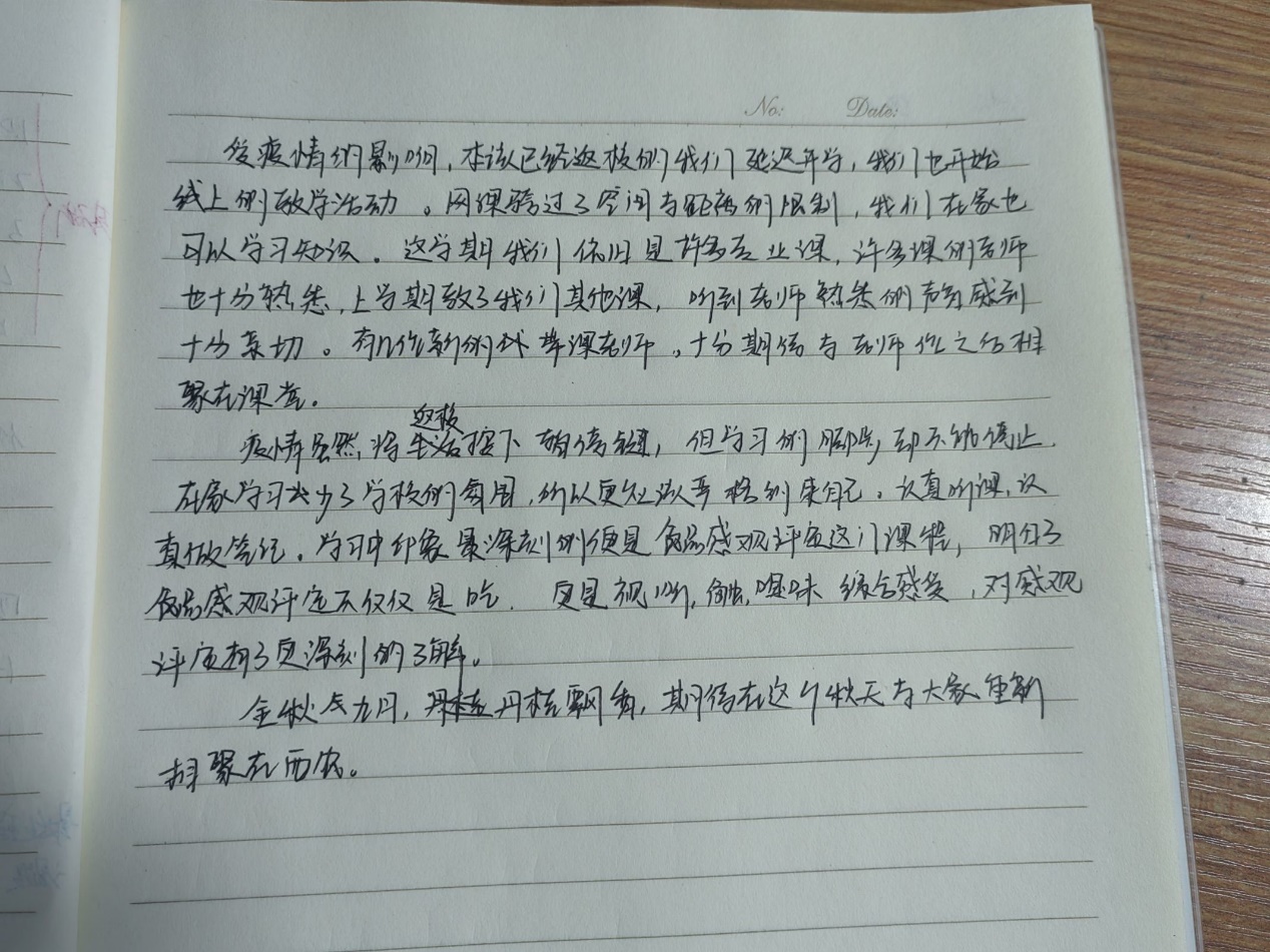 来自食工2102的胡家璇表示,这次打卡活动也是间接地监督了自己,增加了学习的效率,也提升了自觉学习的能力。她说到:“我还是很想回到公司上课的。我们青春或许不可能再回到疫情之前的模样,但与新冠病毒坚定不移地抗争,也赋予了我们青春特殊的意义和内涵。”