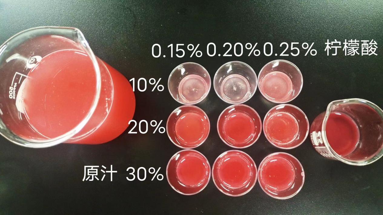 实践队在完成对临潼石榴种植基地的深入调研后,迅速投入到石榴复合果饮的研发中。在罗安伟教授的指导下,队员们快速掌握了均质机、高速剪切机等先进仪器的操作。从10%的原汁浓度逐步递增至60%,队员们进行了全面调配尝试。通过反复试验,严谨地进行称重、调配、过滤、搅拌、剪切、加热杀菌和无菌灌装等操作,结合前期市场调研报告,团队最终确定了45%的原汁浓度为最佳口感比例。在此基础上,实践队还进一步探索了柠檬酸的添加量,最终选定0.2%的浓度,使得果汁的风味与口感达到最佳状态。不仅保留了石榴的鲜美与营养,更具一番独特风味,丰富了临潼石榴产品线。此创新成果不仅展现了科研在农业产业升级中的关键作用,更为消费者带来健康美味新选择,助力临潼石榴产业蓬勃发展。