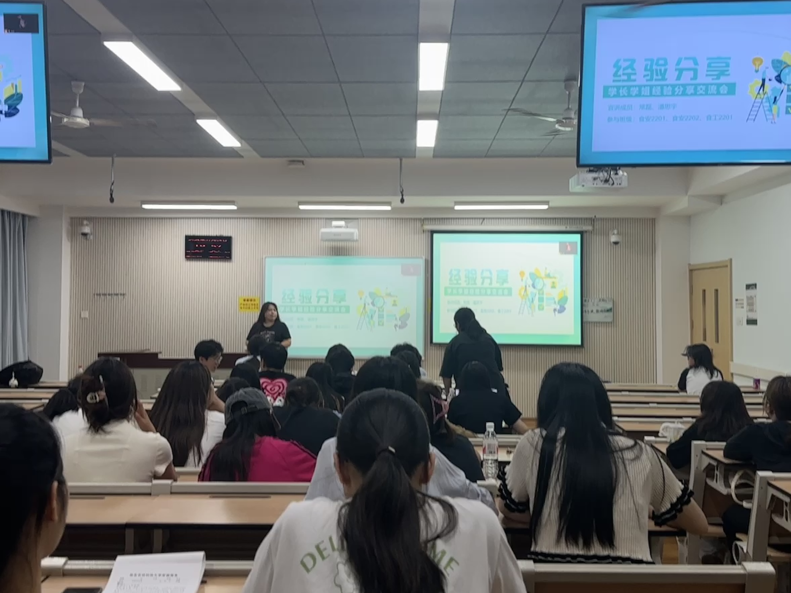 为帮助同学们拓宽视野,增长见识,促进交流和合作,培养反思和总结的习惯,5月13日晚上19:30,食安2202班班长刘琳邀请潘思宇学姐作经验分享,组织食安2201、2202班和食工2201班共同学习。学姐以卓越的个人成就和丰富的人生经验,为在座的学弟学妹们带来了一场深刻而富有启发性的交流。