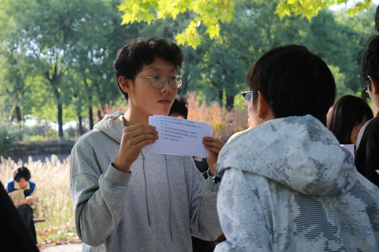 活动当天日,首先参与者首先需要通过易班优课进行了网络文明安全答题。题目涵盖网络诈骗、信息保护等多方面,让师生在答题中增强网络安全意识和知识储备。随后的“骗子纸牌”游戏成为焦点,趣味十足又充满教育意义,让参与者在欢乐中体会网络安全文明的重要性。