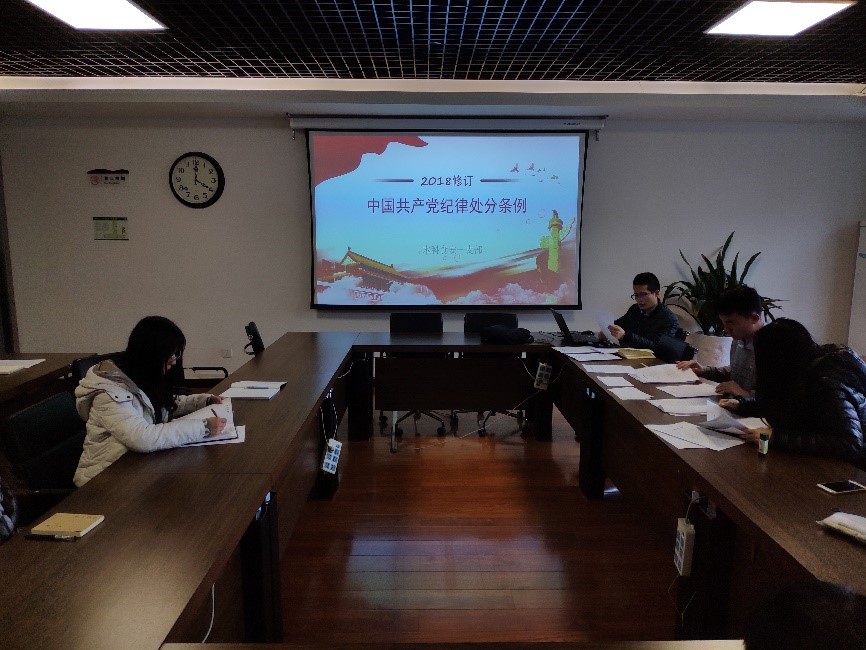 会议伊始,支部书记田洪圆对上学期的支部工作做了简要总结,并提出新学期的工作计划。随后,他带领全体支部成员认真学习了《中国共产党纪律处分条例》,包括《条例》修订的重要意义、修订内容、《条例》中的新内容、新变化以及违反条例的典型案例。他强调,此次修订体现了党中央坚持不懈、持之以恒将全面从严治党推向纵深的坚定决心,更是对全面从严治党、加强党的纪律建设再部署、再动员。我们全体同志要在深刻贯彻执行党中央决定的自觉性和坚定性上下功夫,进一步深化学习水平,增强纪律意识、规矩意识,充分发挥党员的先进性。