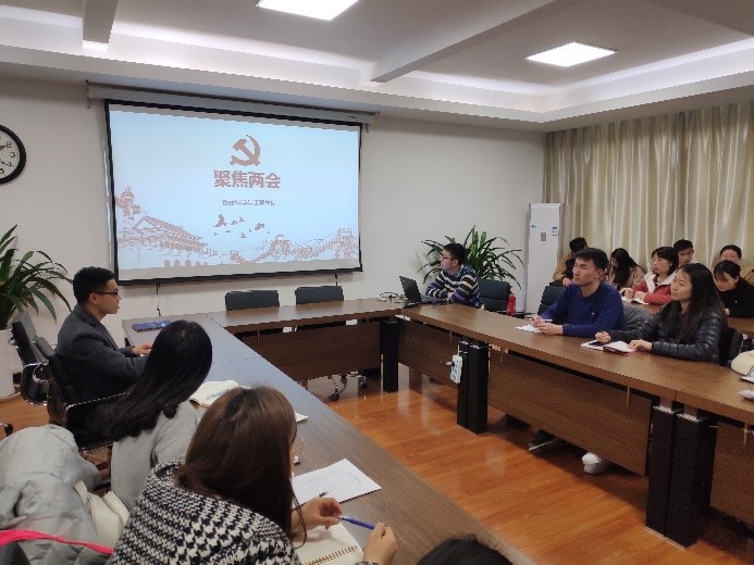 接着田洪圆老师带领大家聚焦两会。他首先从全国两会的基本情况、2019两会的新看点、政府工作报告要点、两会当前进程和主要内容等方面,对全国两会精神进行了全面讲解,特别解读了习近平总书记3月4日下午看望参加全国政协十三届二次会议的文化艺术界、社会科学界委员并参加联组会时的讲话精神,让大家对两会召开的重要意义有了更清晰的认识。随后两个支部的其他成员畅所欲言,在主动关注两会动态发展,认真收听两会相关报道的前提下,结合自身体会向大家分享了自己的两会学习心得。