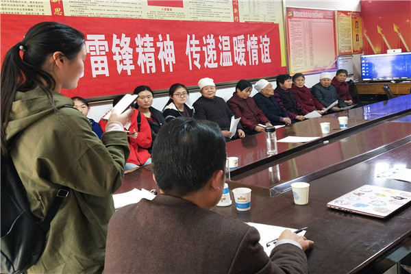活动初期,村助常蕾向李台村居委会主任王彩刚传达了此次雷锋行活动的意图,主任表示大力支持,并为此次活动精心制作了横幅。随后,志愿者们到达李台村会议室,将提前打印好的雷锋事迹资料发到村民们的手中。