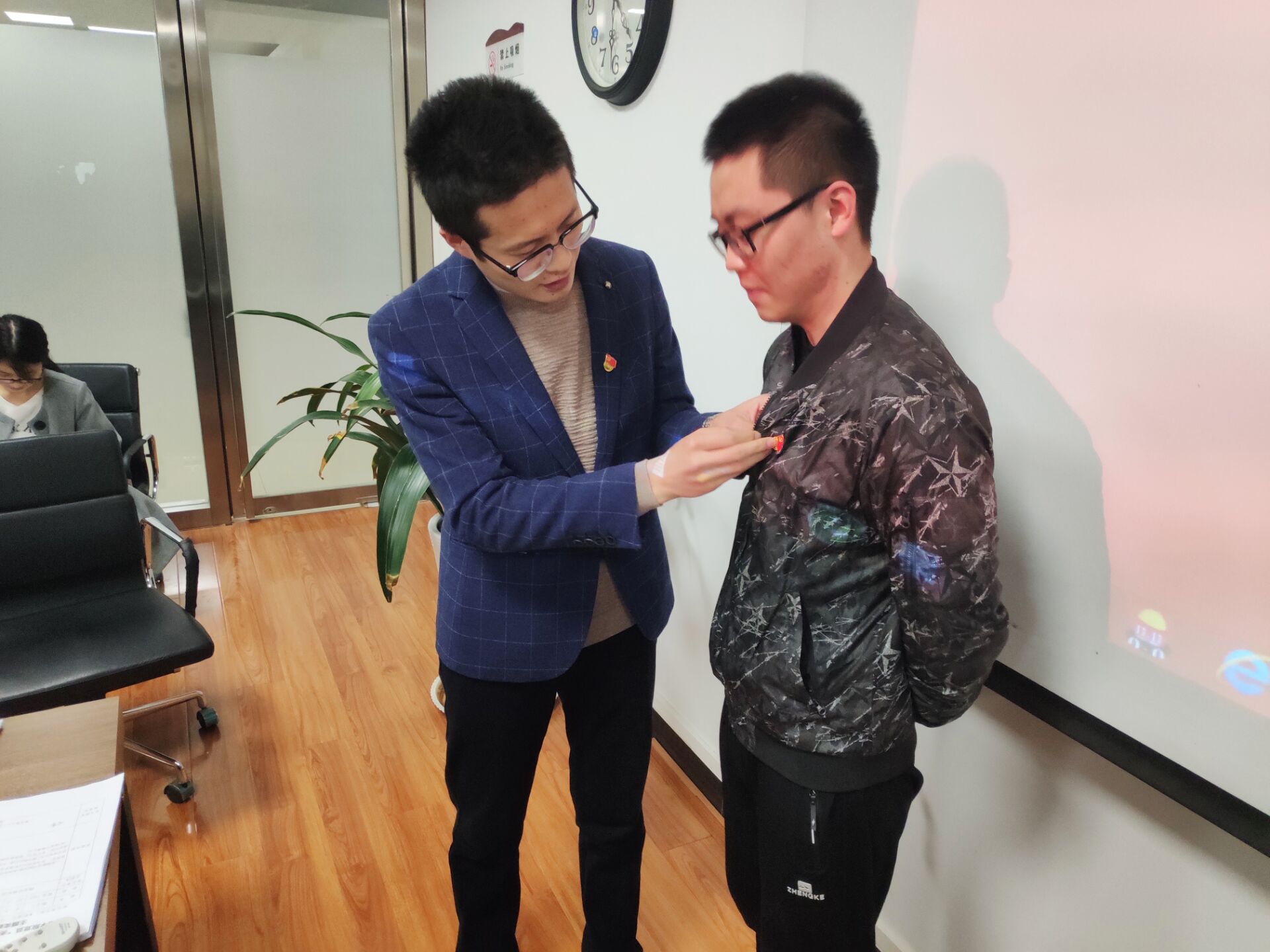 首先,由康鹏老师宣读《关于在全体学工干部和员工党员中继续开展“亮身份·践承诺·树形象”主题实践活动的通知》,强调支部员工党员在日常学习和生活中,必须佩戴党徽,主动亮明党员身份,佩戴党徽必须严肃庄重。通过开展“亮身份•践承诺•树形象”活动,贯彻落实“四讲四有”;遵守政治纪律,发挥先锋模范作用;履行党员义务,诚实正派,勇于担当;坚持群众路线,强化服务意识。