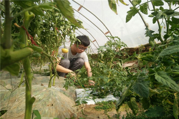 使者为西红柿大棚锄草