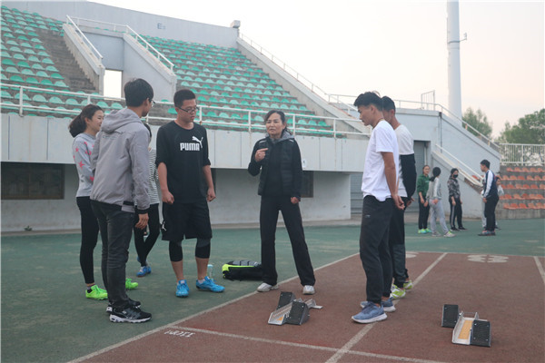 体育辅导员孟老师在进行指导