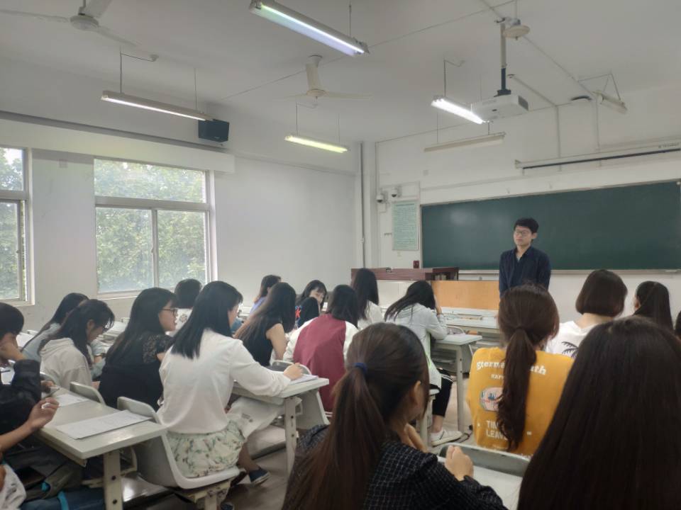 许淼杰老师首先总结了近期在听课、走访班级、走访宿舍中存在的的问题,激励积极进取,向“学霸宿舍”、“学霸班级”学习。之后由两个学委总结最近一个月以来班级在学习风气及学习积极性等方面的变化,了解同学们作息时间,听课状态,作业情况。并提醒同学们考试周即将来临,大家要在考试之前,抓紧时间努力复习,积极备考。