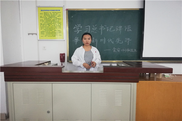 为深度学习习近平总书记于4月30日发表的纪念五四百年的讲话,弘扬时代精神,勉励同学们在实现中国梦的过程中,积极贡献自己的青春力量,食安1801全体同学于5月20日在8101教室开展了以“学习习近平总书记讲话,争做时代先锋”为主题的组织生活会。会议由李毅林同学主持,食安1801班全体同学出席了此次会议。