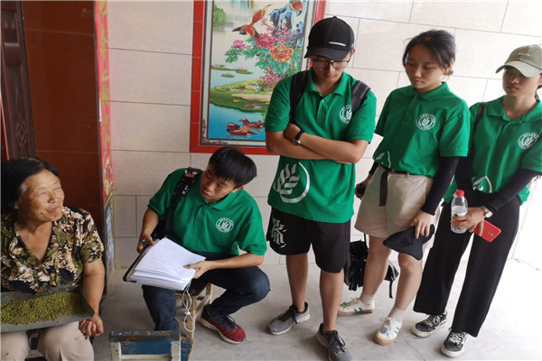 随后,队员们又实地走访了附近申村的农户,向他们了解农作物的种植情况以及生活收入情况。踏进申村,队员们深切地感受到了国家扶贫政策对村民生活的影响,最直观的就是村民的房屋变化——村中土屋与新盖的房屋形成鲜明的对比。在走访中,调研队感受到了当地的淳朴民风及村民对美好生活的向往。在走访了多户村民后,全队了解到,当地人均大约2亩2分地,每户大概4到5人,劳动力一般为2到4人,年轻人多数外出打工,因此劳动力主要为老年人;在种植方面,还是存在农药化肥滥用现象;收成方面,玉米出售0.4~0.6元每斤,小麦(干)1.0~1.1每斤,种地成本为300~500元,一般家庭年收入为7000~10000元,贫困家庭收入为3000~5000元,即便如此依旧要靠天吃饭,比如今年天气异常干旱,收成降低很多,可能连本都赚不回来。在走访中,让队员们印象最深刻的是一群在门口聊天乘凉的阿姨。虽然她们的生活并不富裕,但依旧能够在她们脸上看到最单纯最美好的笑容。她们的孩子多数都外出求学或者在外打工,其中一位王阿姨说:“孩子们都不在身边,我们还是离不开这片土地,多亏了国家的政策,给我们减轻了许多负担,这不房子也翻新了,又有低保什么的,日子是越过越美咧。”