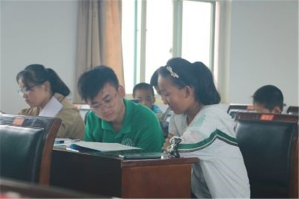早上,队员们准时抵达镇政府,在政府食堂匆匆吃过早饭就马不停蹄地来到党员活动室准备支教材料。鉴于当地政府对服务队支教活动的大力支持,提前几天就已经将活动信息告知给当地村民,村民们也积极配合,对服务队的支教活动表示信任,陆续将孩子们送到活动室。8点30分,孩子们已全部到齐,支教活动按计划准时开始。上午的支教内容主要为暑期作业辅导。在为期两个小时的支教过程中,孩子们将积累的难题一一询问,队员们耐心指导,授人以鱼不如授人以渔,队员们悉心向孩子们传授高效的学习方法和解题思维。青年是国家的希望,党在号召,时代在呼唤,培养优秀的下一代也是老员工服务队肩膀上沉甸甸的责任。