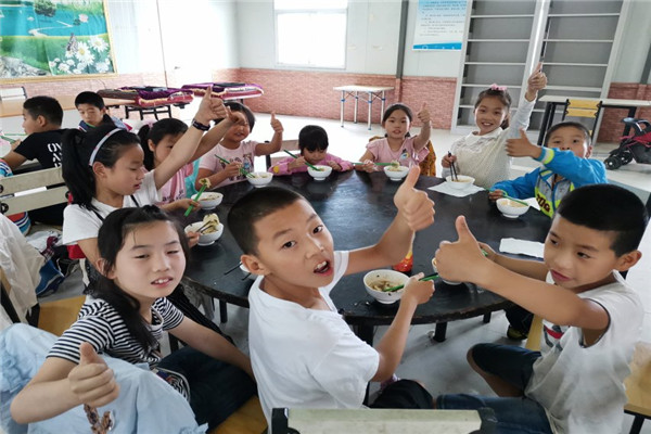 饺子还没出锅,香气早早地溢了出去,正可谓“未见其物,先闻其香”呀,小朋友对于自己的劳动成果也是无比期待,早早洗好自己的碗筷、洗净小手,在大厅等待品尝。热气腾腾的饺子刚出锅,就被一抢而空,小朋友坐在饭桌前,眼中洋溢着满满的幸福,品尝着自己的劳动成果,和自己的好友围在一起讨论着今天课堂上老师讲的知识,村委会传出了阵阵清脆的笑声。