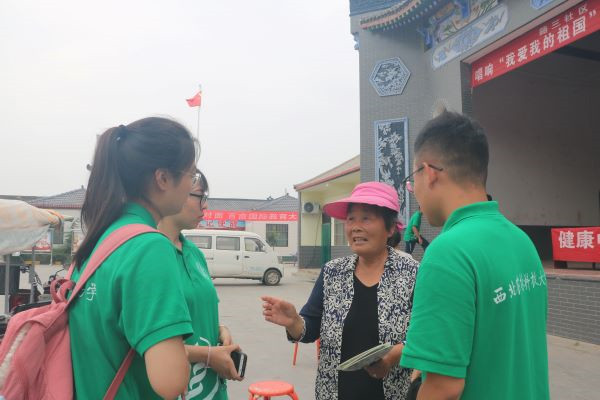 上午9点,服务队抵达广场开展准备工作,当地政府也对此次活动大力支持,派人早早安排好现场音频设施,并且广泛动员村民前来参加讲座,效果甚好,讲座未开始广场上便聚集了很多人,为讲座的开展充分奠定了群众基础。9点30分,讲座准时召开,首先队员贾玉强介绍了高血脂人群的日常饮食注意,他提到:要少吃红肉、肥肉、动物内脏、动物油脂等高脂肪类食物,生活中可以改用鱼肉、植物油代替食用;要多食用蔬菜水果、全谷物、豆类,增加膳食纤维的摄入,主食可以换成燕麦和糙米等。紧接其后,刘光勤等两位队员对高血糖、高血压人群的日常饮食注意问题进行了补充,队员张昊煜介绍了老年痴呆症的诱因、临床表现、如何有效预防等相关知识,他提到:老年痴呆症离广大老年群众并不遥远,中国平均每3位80岁以上的老人中就有一位患有老年痴呆症,每年在全世界的许多国家和地区都会举办世界老年痴呆日宣传日活动,使全社会都懂得老年痴呆病的预防是非常重要的,应当引起足够的重视。虽然四位队员具体病症知识讲解部分不尽相同同,但却有异曲同工之处,他们在讲解中都穿插强调了心理健康的重要性:老年人要避免受到刺激,学会自我控制和调节情绪。遇事要想得开,不以物喜,不以己悲,保持一颗平常心。保持年轻的心态,是一剂最好的健脑良药。