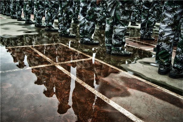 站军姿、练转身、走正步、排队形。无数次重复的口令让教官嗓音沙哑,多次动作的矫正也让教官紧皱眉头,一遍遍的动作示范让教官额头满布汗珠。但声音的沙哑不能掩盖教官的严谨,眉头的紧皱不能减弱教官的关心,布满额头的汗滴不能冲淡教官的尽职。就像苏轼曾说过的那样,“古之立大事者,不惟有超世之才,亦必有坚忍不拔之志。’吾辈必将凤凰涅磐!”