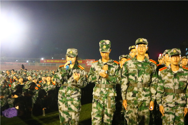 不同于往日的拉歌,今晚的训练场因营间的合唱比赛而沸腾。各营都状态十足,各有妙招。除了准备数日的歌曲,许多连队都带上了荧光棒,公司牌。个个都斗志满满,不甘落后。食品的连队没有多余的道具,但他们的气势和态度足以赢得高分。三十连的教官和学子们打气:“我们练了那么久,都给我拿出气势来,他们说我们没道具,我们就赢给他们看看!”集体的力量不可小觑,团结的团体更有破竹之势。十余天的训练将他们牢牢的凝聚在一起,团队间默契温馨,所有点坚持都被彼此肯定,走过的一路都是相互扶持的美丽风景。