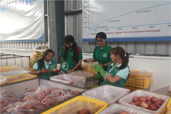 今天在顶端果业的实习过程也圆满结束,在和师傅告别时,队员们纷纷表示,走出校园,来到实际的苹果生产车间,结合在课堂学习内容进行观摩学习并亲自上手操作,才知道自己所学在实际生产中的意义。实际的生产车间和公司这是不同的两个课堂,在公司只是单纯的从书本上获取知识,但是在这里,可以用眼睛看,可以用耳朵听,更可以用双手去触碰这一个个鲜活的苹果,去见证它是如何一步步成为贫困群众脱贫道路上的“幸运果”。