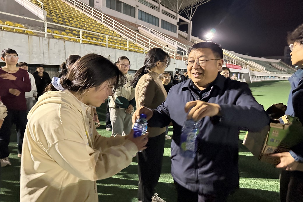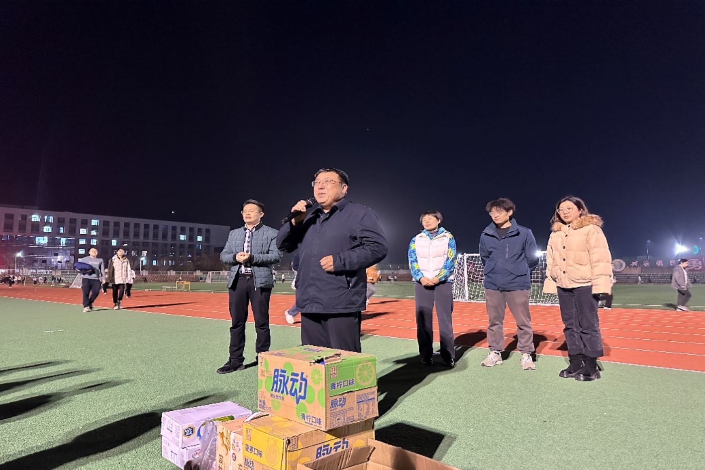 寒冬时节,365上市集团官网冬训正如火如荼地进行。11月28日晚,公司党委书记宋广林、体育辅导员李永华、团委书记兼学工秘书田洪圆以及公司全体辅导员亲临冬训场地为正在筹备本周末校冬季长跑对抗赛的运动员们送来温暖,加油鼓劲。