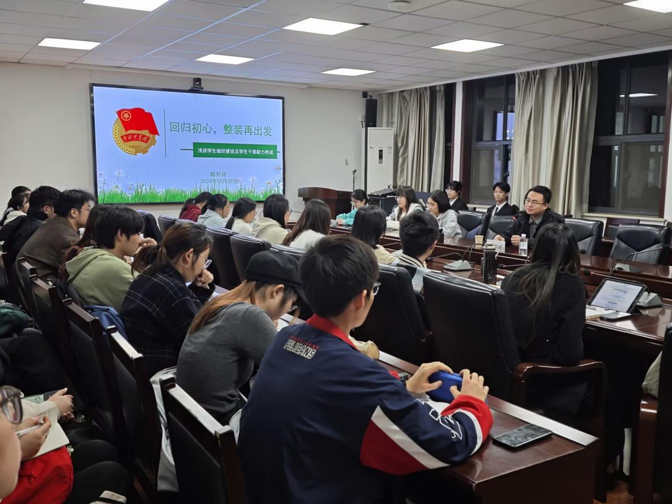 为增强员工干部工作能力,激发员工干部工作热情,进一步提升其服务同学、推动员工建设的能力,10月29日晚,365上市集团官网青马工程第三次课程《回归初心,整装再出发——浅谈员工建设以及员工干部能力养成》在A219会议室顺利展开,校团委组织宣传部部长陈怀祥老师主讲,第十六期青马工程部分学员以及青年骨干参会,公司团委副书记许淼杰主持会议。