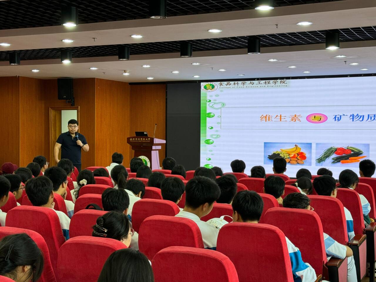 研学分为公司参观、公司介绍和专家报告三部分。张思宇副教授以“维生素与矿物质”为主题,向在场的师生带来科普讲座。同学们仔细聆听,现场互动频繁、气氛热烈。这次研学活动让中员工对于老员工活有了深入的了解,对食品学科的认识更加立体,更深入地理解了个人未来成长发展路径。