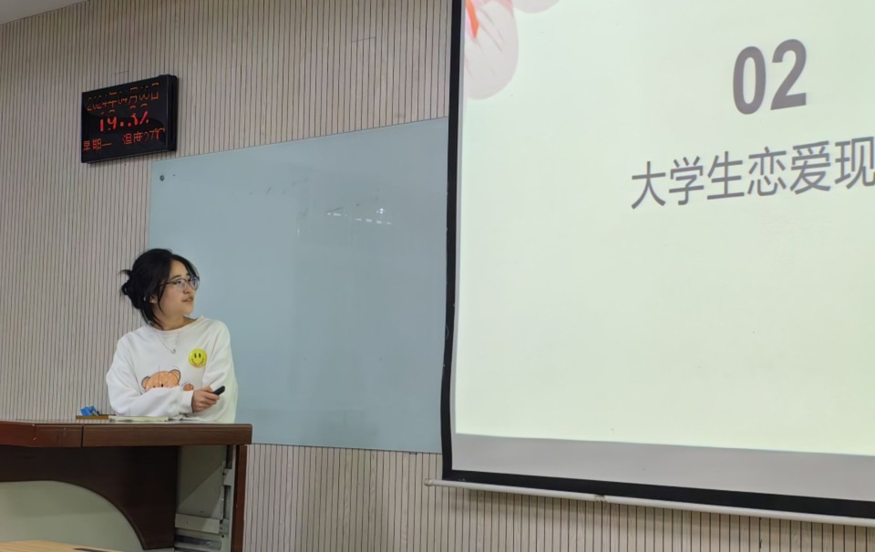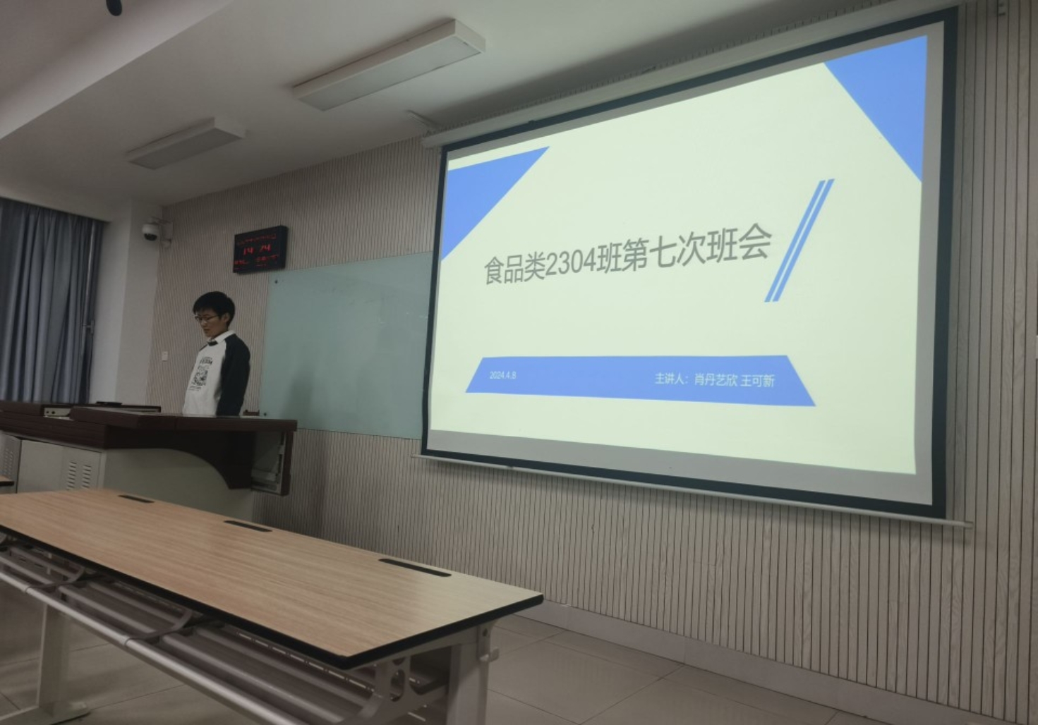 为帮助同学们树立正确的恋爱观,促进心理健康成长,4月8日晚,食品类2304班于N8114围绕“老员工恋爱观”开展了一场别开生面的心理建设主题班会,会议由心理委员王可新、班长肖丹艺欣主持,食品类2304全体同学参与会议。