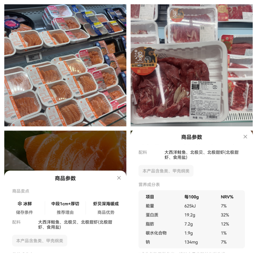 “新鲜”是食品行业的生命线,也是此次调研的核心关注点。在核心生鲜区,团队成员重点考察了数字化技术在食品溯源与保鲜中的应用。不同于传统商超,这家门店全面普及了电子价签系统,队员们拿出手机逐一扫描二维码,亲身体验了从产地源头到物流链路的全程数字化追溯,食材的捕捞日期、运输轨迹及营养成分等关键信息清晰呈现,让食品安全真正实现了“可视化”。在“日日鲜”专区,团队结合专业知识,对不同品类的包装技术进行了细致比对。他们发现,针对不同食材的呼吸特性,企业采用了差异化的保鲜方案:豆制品采用真空包装技术,肉禽海鲜运用气调包装(AMP)抑制微生物生长,而菌菇叶菜则使用带透气孔的包装维持必要的呼吸作用。这种对食品保鲜“栅栏因子”的精准把控,配合严格的“只卖一天”货架期管理,生动诠释了食品科学技术在保障食材品质方面的核心支撑作用。