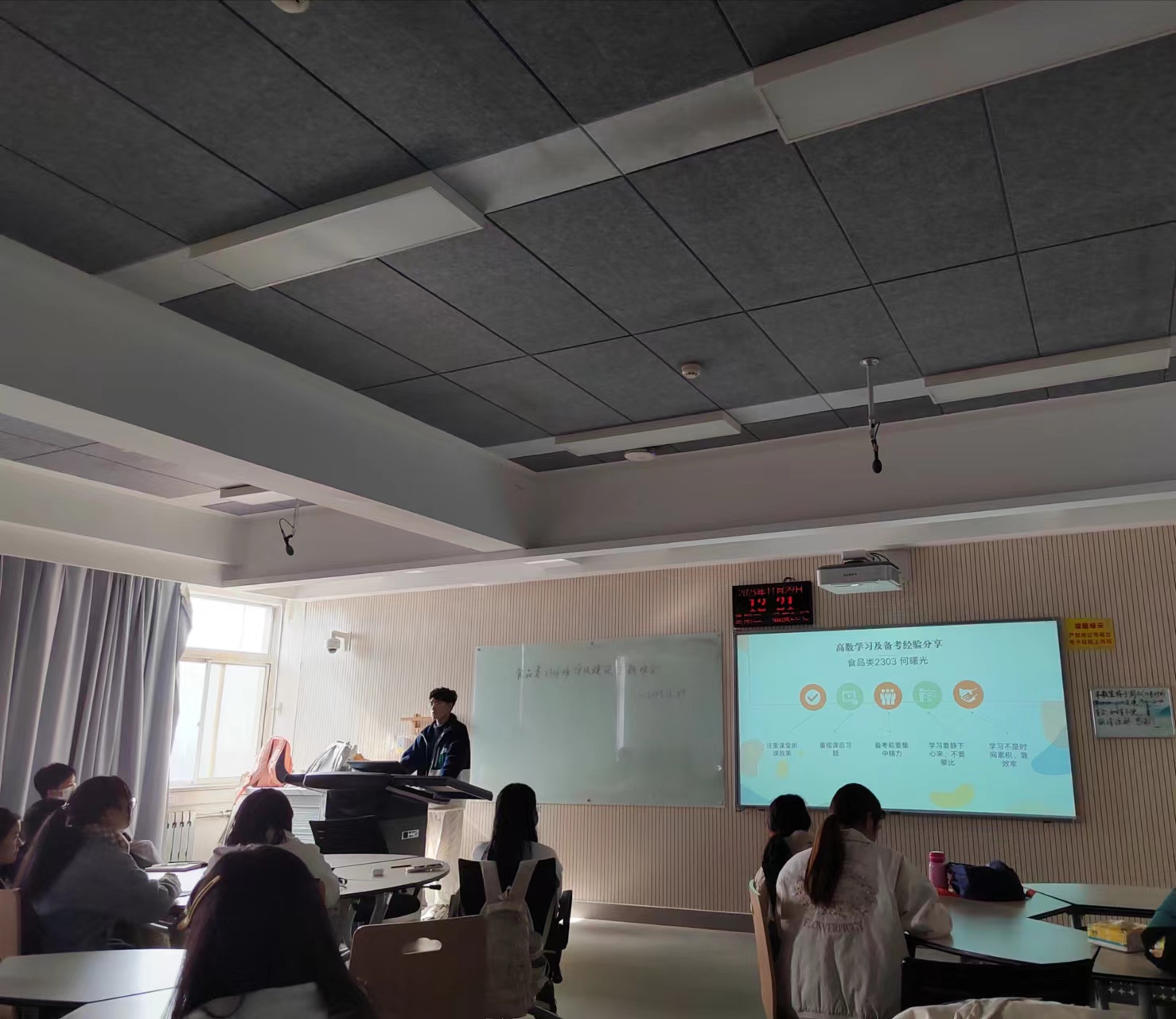 食品类2303何曙光同学分享了高等数学学习的方法技巧,鼓励同学们坚定自信,重新调整好自己的心态,继续投入到高数的期末复习进程中。