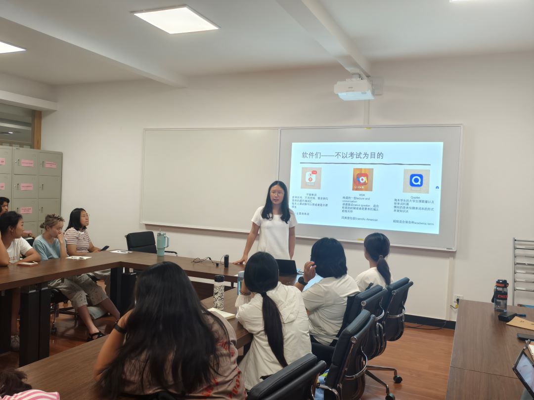 随后,由食工国际2401班班助、高年级优秀员工代表食工国际2202班郝诗瑾同学分享了多种实用英语学习工具,同时,她鼓励学弟学妹们:“坚持学习英语、努力学习英语,将英语学习不断融入自己的日常生活中。”
