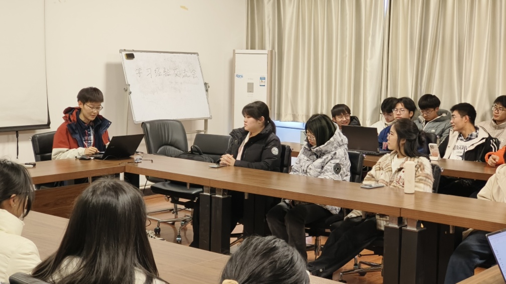 会议开始,班长肖丹艺欣介绍了参会的宣讲团成员,对他们的到来表示热烈欢迎。接着,宣讲团成员分别分享了他们在学术、实践、社团等方面的丰富经验和宝贵建议。