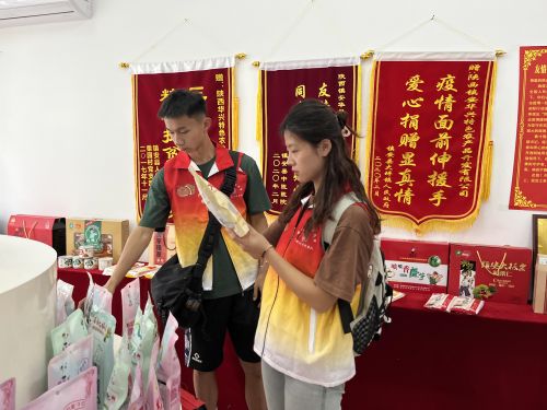 7月30日下午,在团县委的积极对接下,实践团来到了陕西合曼农业科技有限公司进行参观调研。首先团队来到了产品展销区,这里展示了各式各样的深加工产品,如板栗、核桃、坚果等。其中板栗产品尤为引人注目,公司的板栗系列产品包括甘栗仁、板栗酥等多种规格和包装形式的产品。在与企业负责人的交流中,实践团了解到,这些产品不仅保留了板栗原有的营养成分和风味,还通过创新工艺提升了口感和品质。企业不仅在农产品的种植、收获环节下功夫,更是在产品的后期处理和包装设计上不断创新,力求满足市场需求,提升产品的市场竞争力。负责人还向实践团介绍了企业的发展规划,包括未来将如何结合当地特色,发展特色农业,以及如何通过电商平台拓宽销售渠道,实现农产品的线上销售,从而更好地服务消费者,带动地方经济发展。