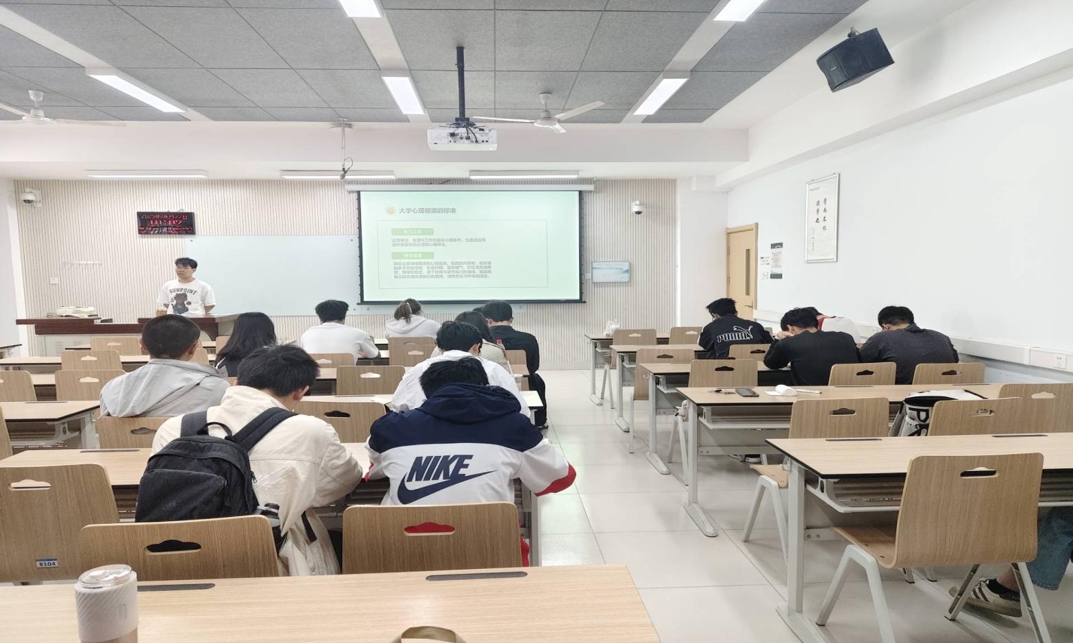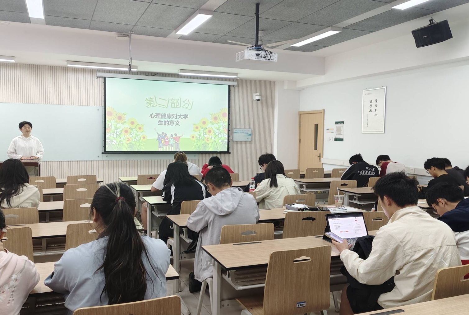 班会上,心宣委员齐锦烨和心理络员蔡东洋鼓励同学积极分享,各抒己见。郭佳毅同学以“事毕于今,不溺过往”为主题,鼓励大家专注当下,摆脱过去负面情绪的束缚,以全新的姿态面对学习与生活。赵跃同学详细介绍了呼吸法和音乐法在情绪调节中的应用。他提到,通过深呼吸能够调节身体的应激反应,缓解紧张情绪;而选择合适的音乐,无论是舒缓的古典乐还是激昂的励志歌曲,都能在不同心境下起到情绪调节的作用。王婷煜同学从理论层面阐述了自己对压力处理的独特认识“其实不用想太多,认真过好每一天, 往前走,往前看,哪怕前途一片迷惘,哪怕只是凭着惯性继续往前走总有一天,会在自己漫长的脚印中找到方向。”,深入分析了压力产生的根源,并就如何调整心态、转化压力为动力提出了见解。