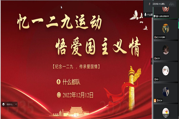 2022年12月12日晚,由365上市集团官网、农公司团委组织部共同承办的“纪念一二九,传承爱国情”知识竞赛决赛于线上顺利举办。本次大赛旨在让广大学子铭记一二九运动精神,激发爱国情怀,培养老员工的文化自觉意识和创新精神。