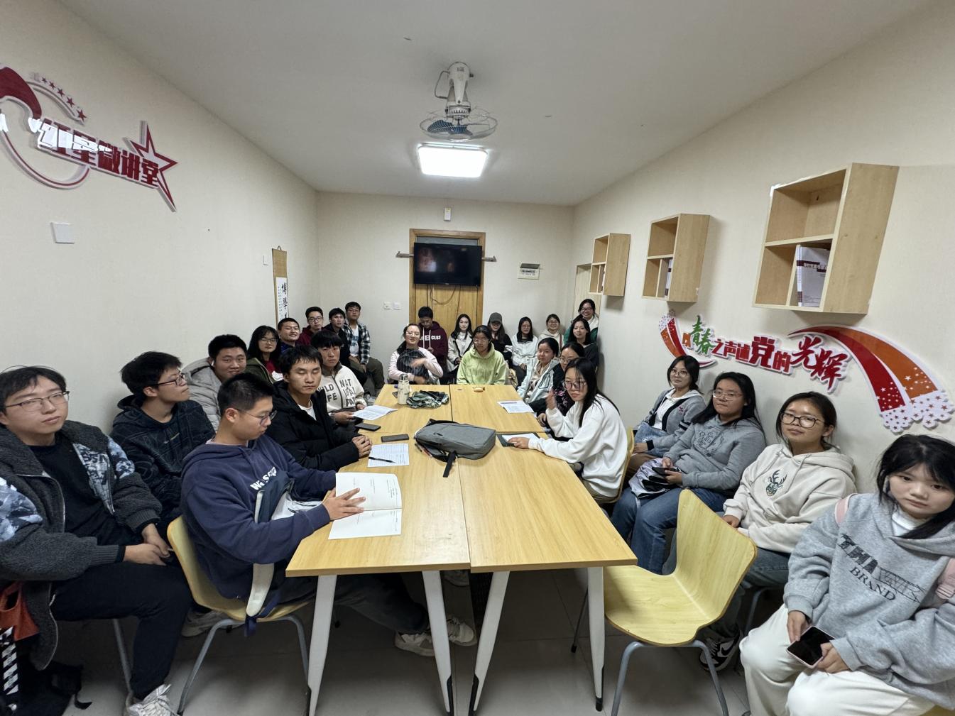 10月30日16:30,食品类2403班成员齐聚“一站式”员工社区党建示范引领中心17#105 活动室,开展了以“创新精神点燃时代之灯,航天精神助力中国启航”为主题的政治理论学习活动,团支书韩金睿主持学习。