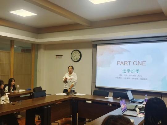 会议第二项为班委竞选,此次班委组成为班长、团支书、学委、心宣、文体、社科、组织8人共同组成。有意愿的同学纷纷上台发言并表示非常愿意为班级服务,为集体贡献一份力。