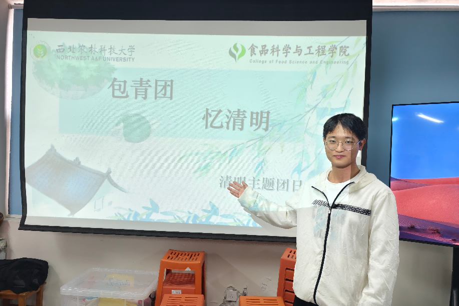 活动伊始,食工国际2302班团支部书记程相瑾同学讲述了青团的历史渊源、制作方法和价值意义。他提到:“青团是清明节的传统食品,它不仅承载着对先人的思念之情,也寓意着春天的到来和生命的希望。”