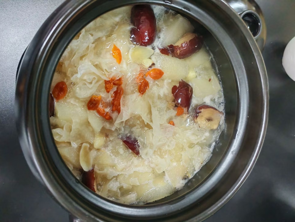 为传承“顺时而食”的中华饮食文化,丰富校园文化生活,在12月7日大雪节气来临之际,中华饮食文化协会于食品楼C513成功举办银耳雪梨药膳制作活动。同学们以亲手实践的方式,解锁传统养生智慧,感受中华饮食文化的独特魅力。
