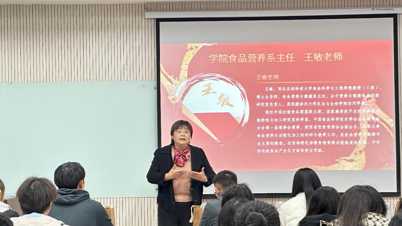 会议伊始,食品营养系主任王敏老师围绕食品营养与健康的发展史展开阐述,从人类需求的角度出发,结合医学领域相关知识,深入剖析了食品营养专业的重要性。她指出,食品营养对于人类健康的维护和促进意义非凡,同学们应意识到所学专业的价值。同时,王敏老师鼓励大家带着问题主动求知,不要局限于既有知识,要树立高远的追求,在大学时光中注重团结协作。“虽远必至!学有所成!”这一话语激励着每一位在场同学。