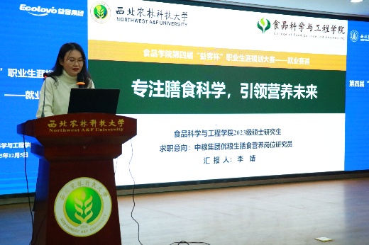 随后,李婧等8名选手依次上台演讲。选手们结合食品专业特色与自身兴趣特长,从多个方面详细分享了个人的就业看法与规划,展现出扎实的专业认知。