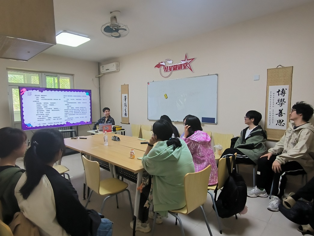 本次读书会的书籍名称为《小王子》,李浩宇老师在读书会上为大家概括讲述了《小王子》全书的主要内容,随后带领大家朗读书中几个经典片段帮助同学们回忆书的主要故事情节,希望大家可以通过读书会的学习与交流,思考书中情节及其内涵的哲理,探寻蕴藏在书中的真正意义。