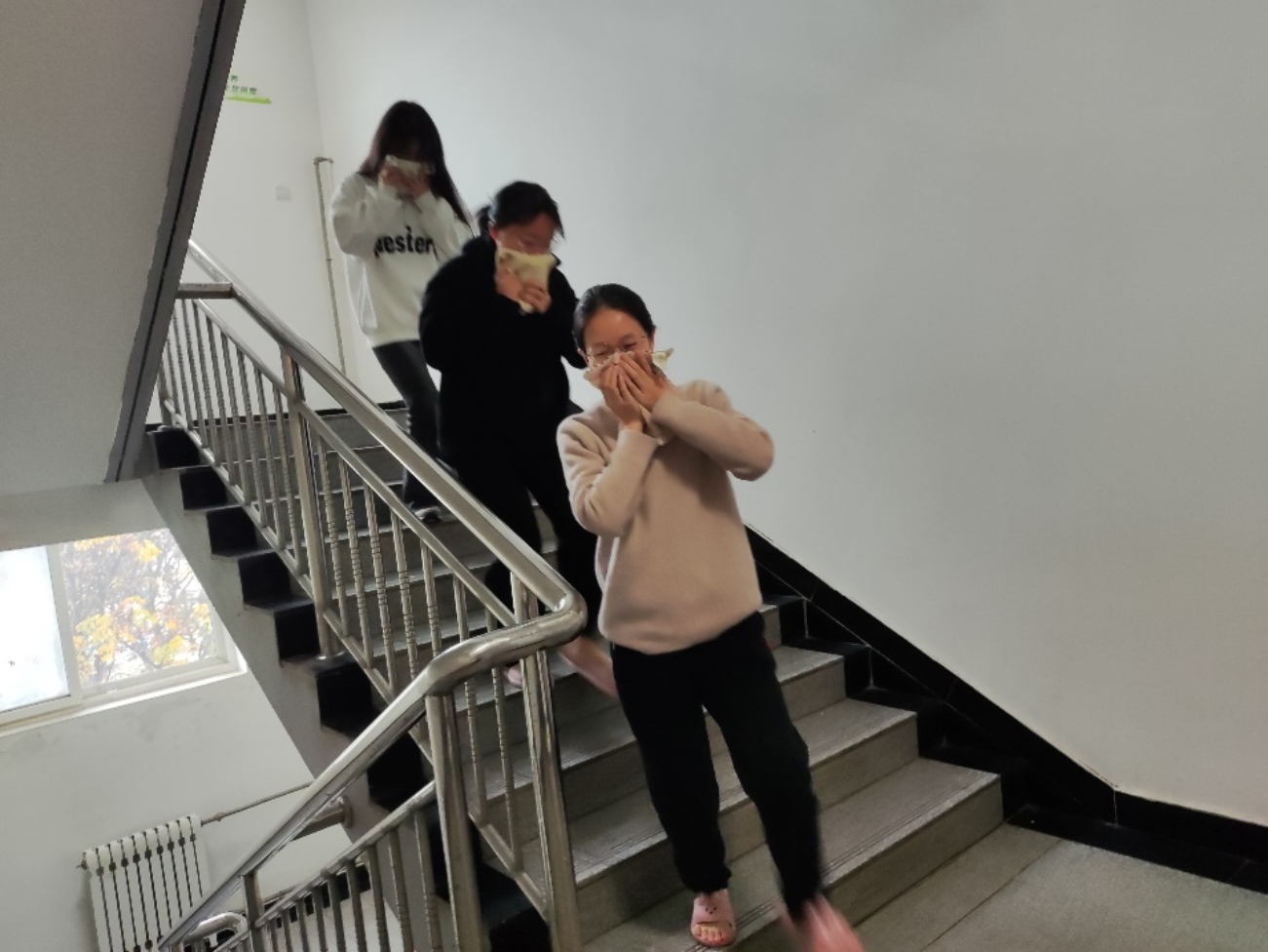 实地演练环节。支部成员按照预定的逃生路线和逃生技巧,在宿舍楼内进行实地逃生演练。在演练过程中,同学们用湿毛巾捂住口鼻,低姿态快速前行,严格按照逃生指示牌的指引,沿着预定的逃生路线迅速有序地撤离宿舍楼,展示出良好的应急反应能力。演练完成后,团支部对自我演练过程中存在的问题进行反思总结。“需要进一步加强对于逃生技巧的学习和掌握,以便在真正的火灾发生时能够更加迅速、准确地做出反应。”郭亦佳同学表示。