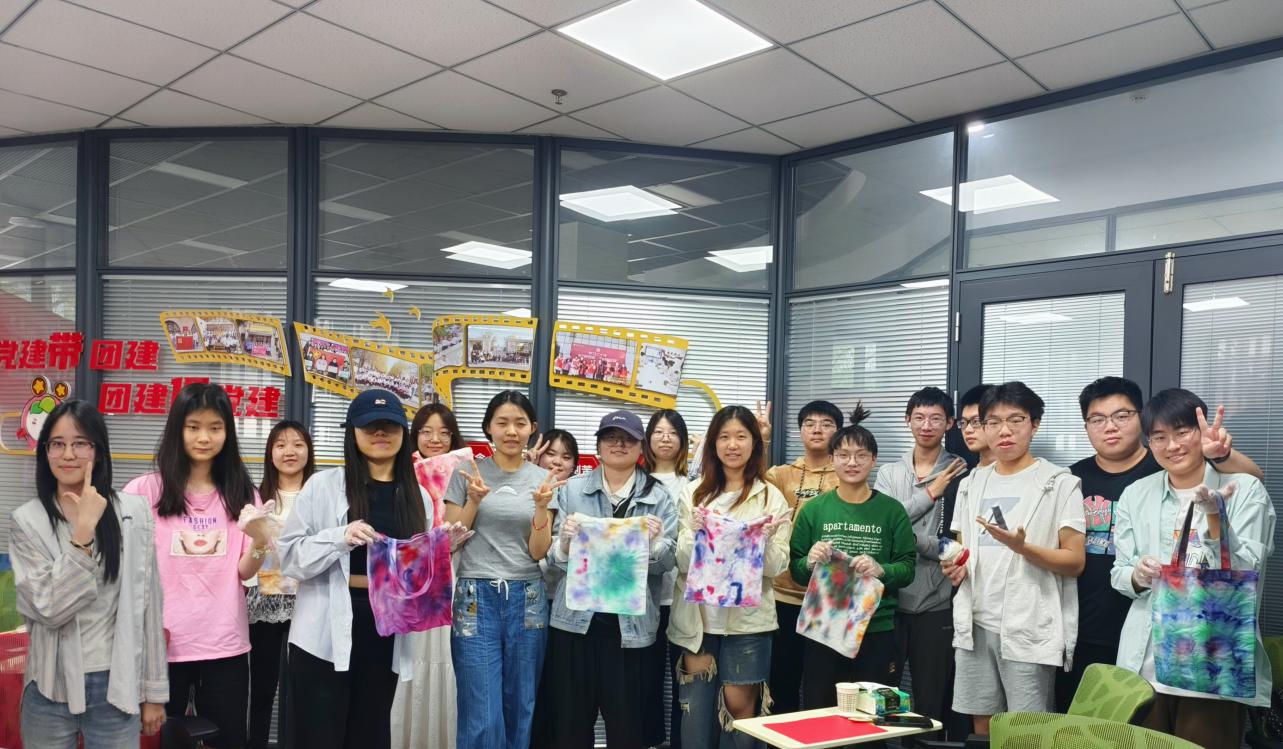 班会最后,同学们亲手制作扎染帆布袋。大家将染料随心泼洒在布袋上,仿佛是在为自己的情绪“上色”。有的同学选用明亮的红色,寓意着对未来的希望;有的则钟情于深沉的蓝色,象征着内心的沉淀与思考。同学们纷纷拍照留念,用镜头定格这份独特的“心理成长纪念品”。