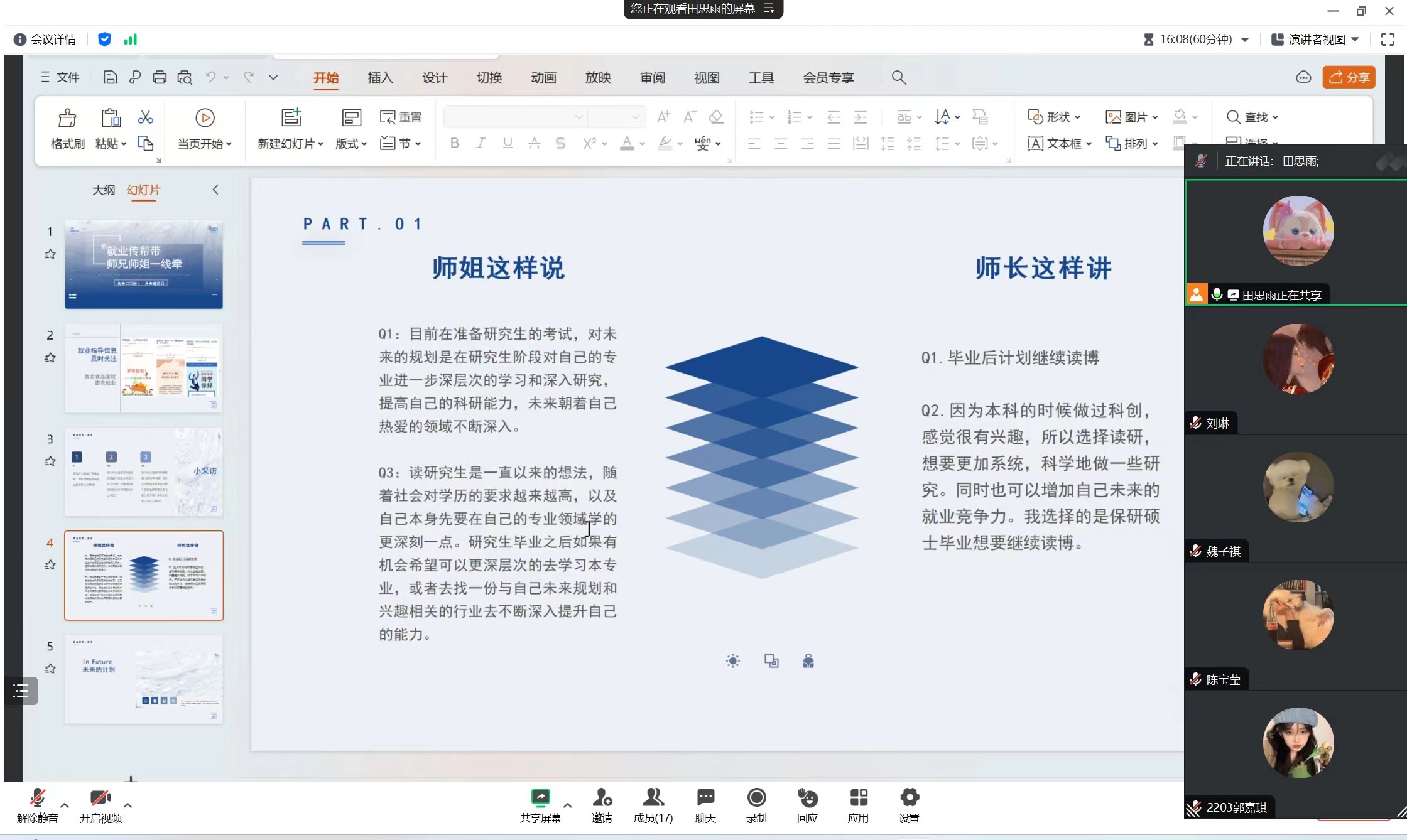 接下来,团支部邀请到了远在国外深造的学姐以视频的形式为大家分享出国留学及英语学习的经验,她从简历制作、面试技巧、公司适应等方面进行了详细的讲解,让同学们受益匪浅。她建议大家要提前规划自己的职业道路,有针对性地提升自己的技能,同时也要保持自信和积极的心态。