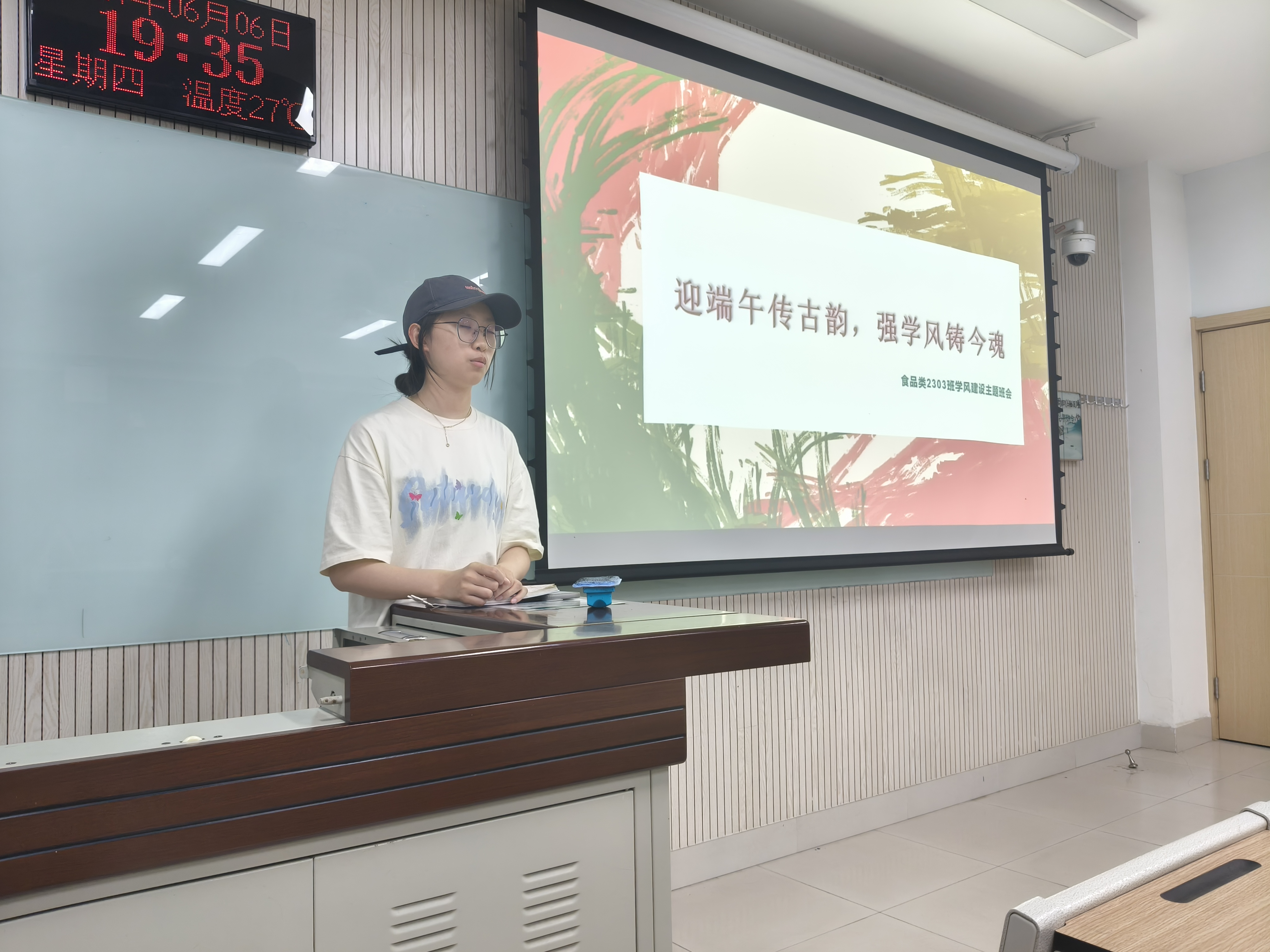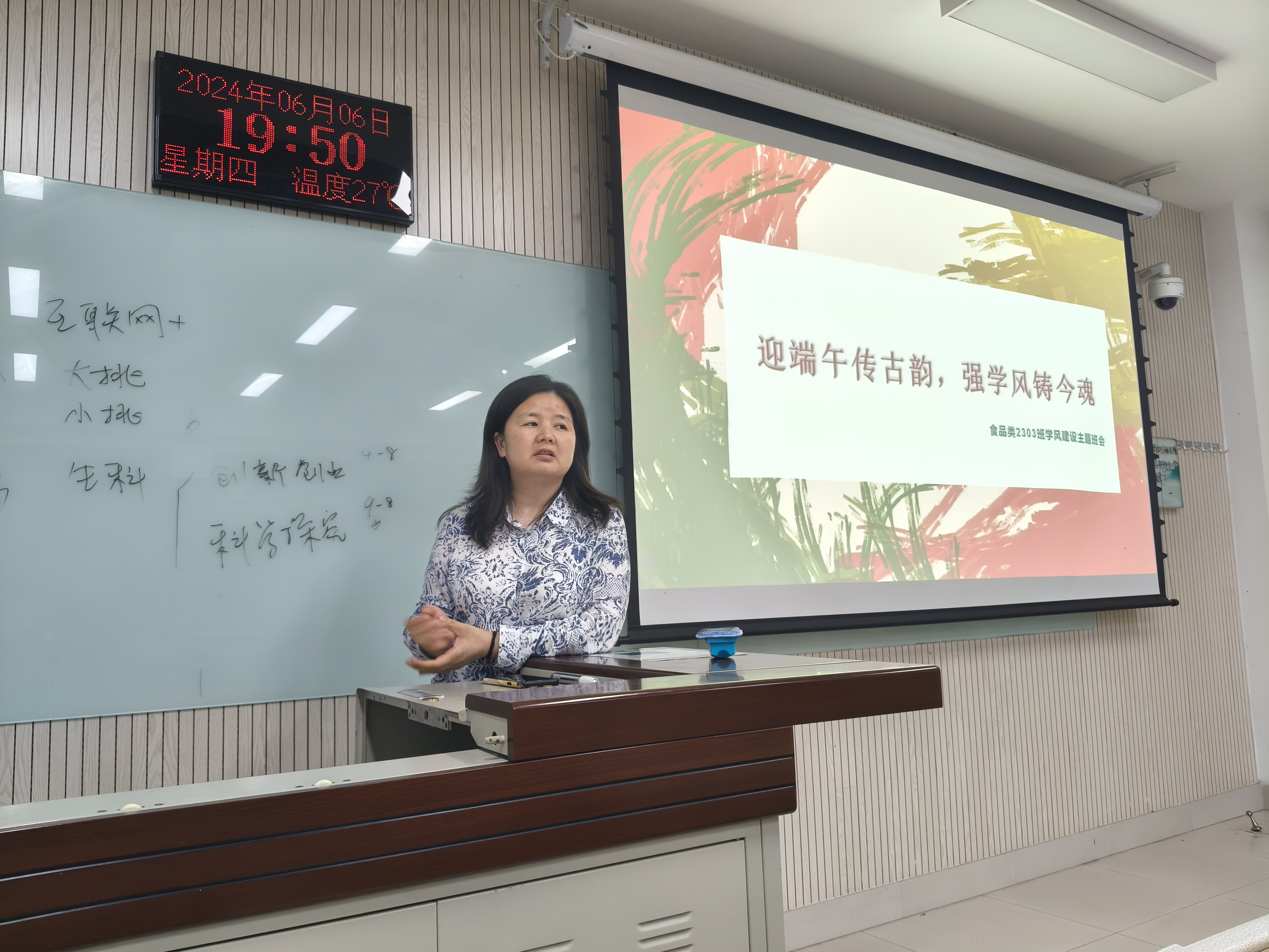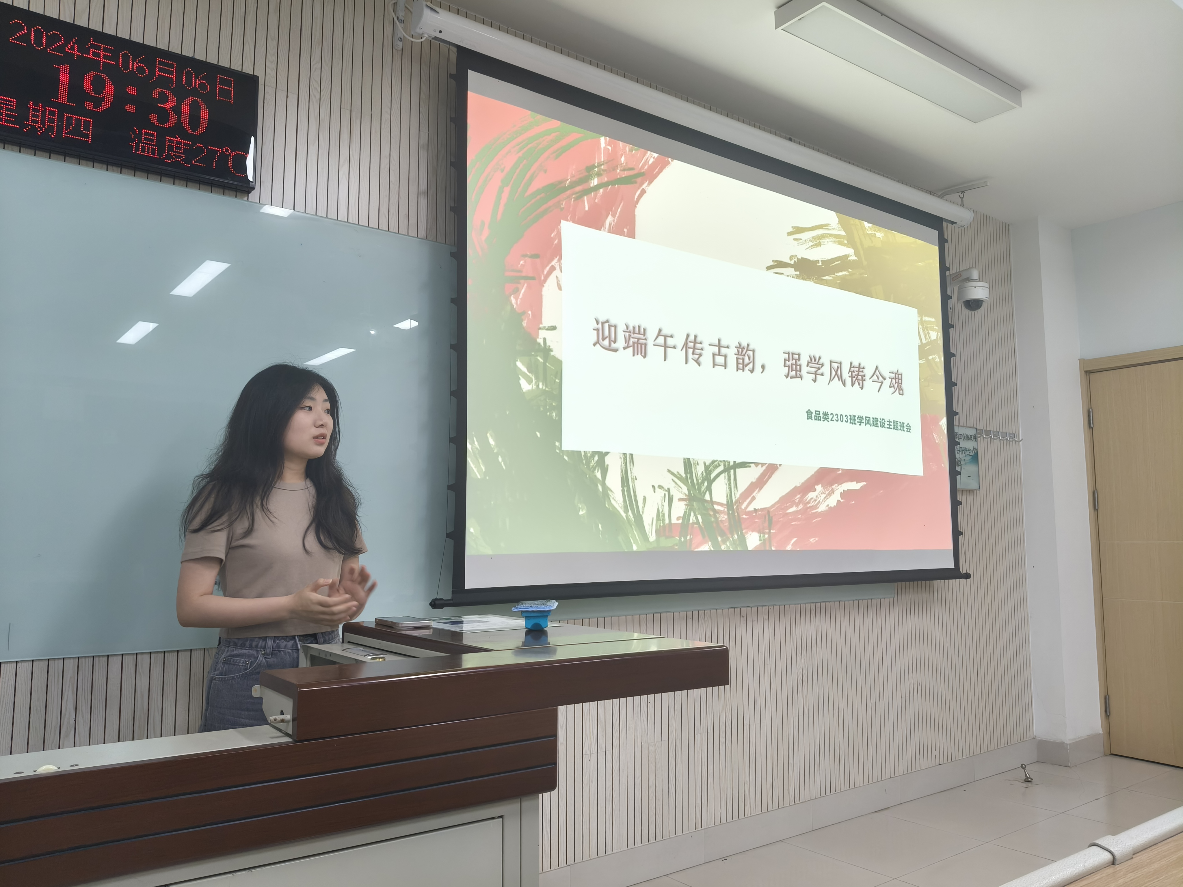 6月6日食品类2303班在N8120教室举办“迎端午传古韵,强学风铸今魂”主题班会,旨在通过端午节的文化传承,激发同学们的学习热情,同时推动班级学风建设和科创氛围的营造。