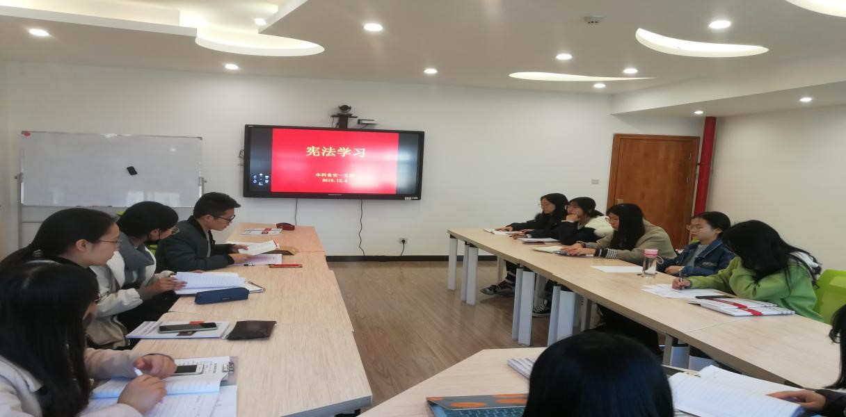 12月4日是国家宪法日,为了增强员工干部的宪法意识,弘扬宪法精神,2016级员工干部进行了《宪法》知识及精神学习。本次会议由辅导员田洪圆老师主持。