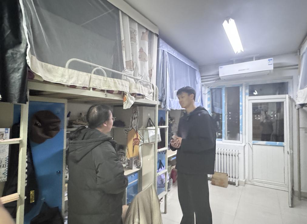安全无小事,防患于未然。在交流之余,两位老师还对每间宿舍进行了细致的安全隐患排查。他们仔细检查了用电设施、物品堆放等情况,反复叮嘱同学们务必增强安全意识,严格遵守宿舍管理规定,坚决杜绝使用违规电器,离开宿舍及时断电,共同维护安全、稳定的住宿环境。同时,老师们也温馨提醒同学们注意冬季保暖、保持宿舍经常通风和内部整洁,养成良好的个人与公共卫生习惯,以健康的身心状态投入到学习生活中。
