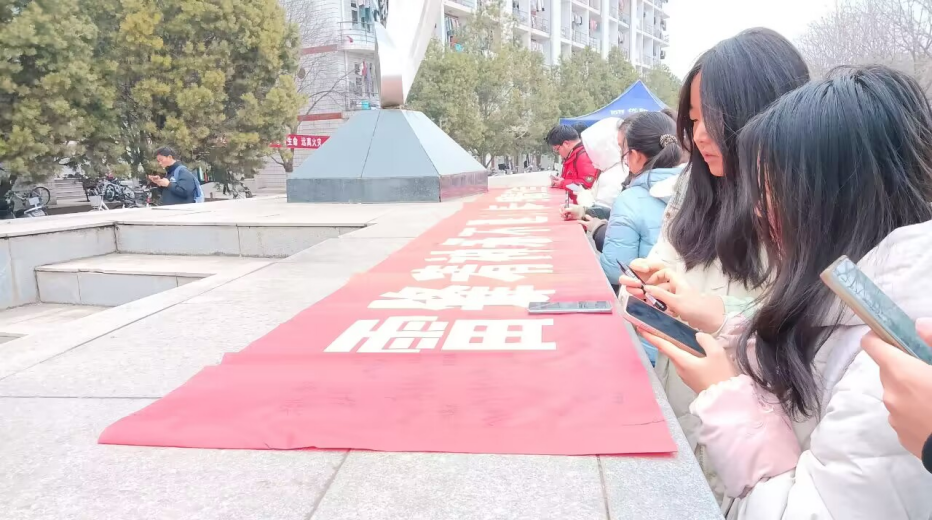 活动开始前,工作人员摆好横幅和签字笔。准备完毕后,同学们积极响应号召踊跃参与,逐一在横幅上写下自己的姓名。与此同时,签完字的同学在旁边分享自己对于雷锋精神的理解,以文字和语言诠释着永恒的精神瑰宝。