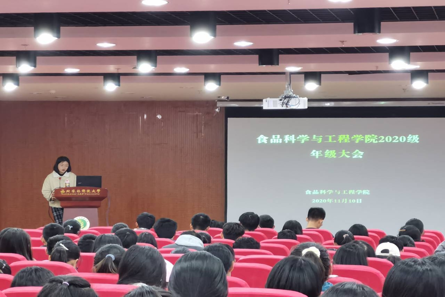 为回顾前一阶段员工工作以及班级建设情况,做好工作和学习的经验总结,11月10日下午,2020级全体员工于食品楼六楼报告厅召开2020级年级大会。会议全程由2020级辅导员秦雅娜主持。
