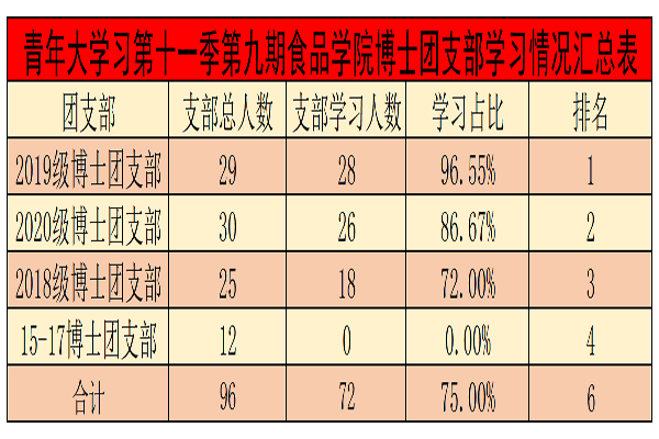 青年大学习第十一季第八期365上市集团官网博士各团支部学习情况汇总表