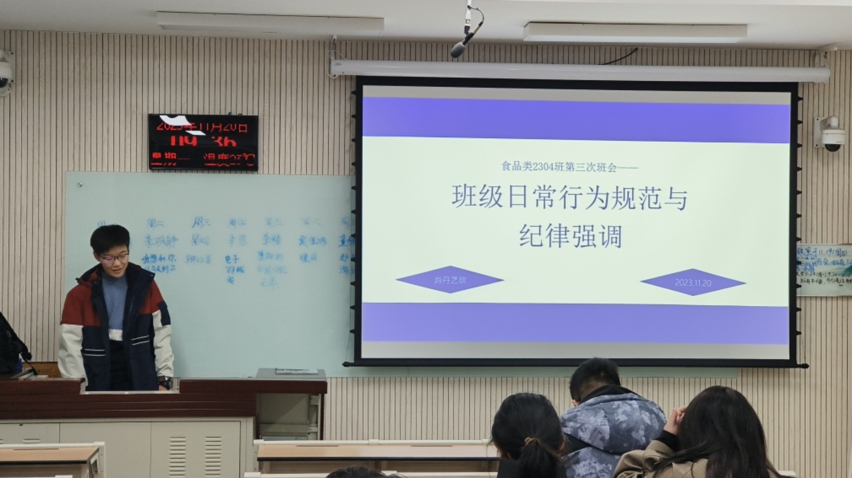 集团的各项规章制度是规范员工行为的一把有力戒尺。在学风优化月活动的影响下,为再次让同学们明确校纪校规的边界线,食品类2304班于11月20日在N8120召开了第三次班会。